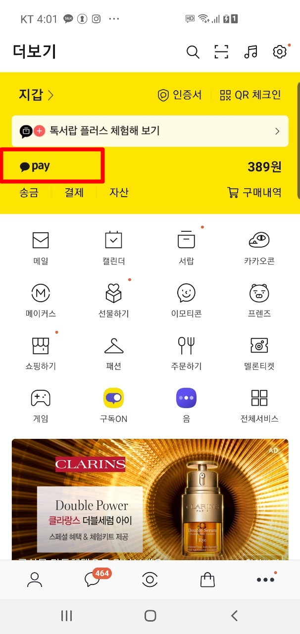 1. 카카오톡을 들어가 더보기란을 눌러주고> 자산을 누릅니다.