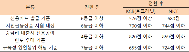 실제 신용 상 별 차이가 없는데도 등급에 따라 신용카드 발급이 안된다거나, 금융거래 상 부정확한 기준으로 제한되는 것을 줄이려는 취지를 담고 있습니다. 따라서 개인의 특성에 맞는 세밀한 대출심사가 가능하게 되었습니다.
