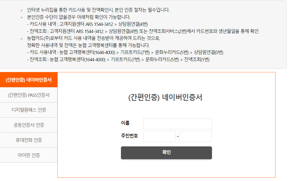 문화누리 사이트에서 본인인증 확인을 거쳐 온라인으로 잔액조회가 가능합니다. 본인 인증 수단이 없을 경우, ARS 1544-3412로 상담원 연결하여 확인 가능하며, 농협은행 고객센터를 통해서도 확인이 가능합니다.